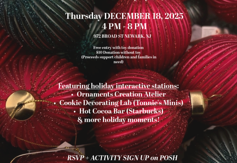 Soul of the Season: Joy Reimagined is a free immersive holiday toy drive + community celebration designed to uplift Newark families through creativity, culture, and connection. This one-night experience features hands-on activity stations, hot cocoa and treats, a community wish wall, a Dear Santa writing studio, and festive photo moments — all intended to spark joy and support families during the holiday season.